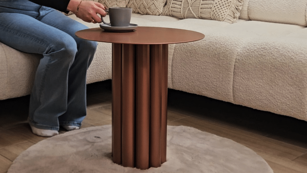 Whether next to a neutral sofa or set against bold furnishings, Aurea opens up endless styling possibilities. Choose this table to infuse your space with refined brilliance, functional surface area, and a touch of inspiration — giving your living room an unmistakably sophisticated, copper-toned dimension.