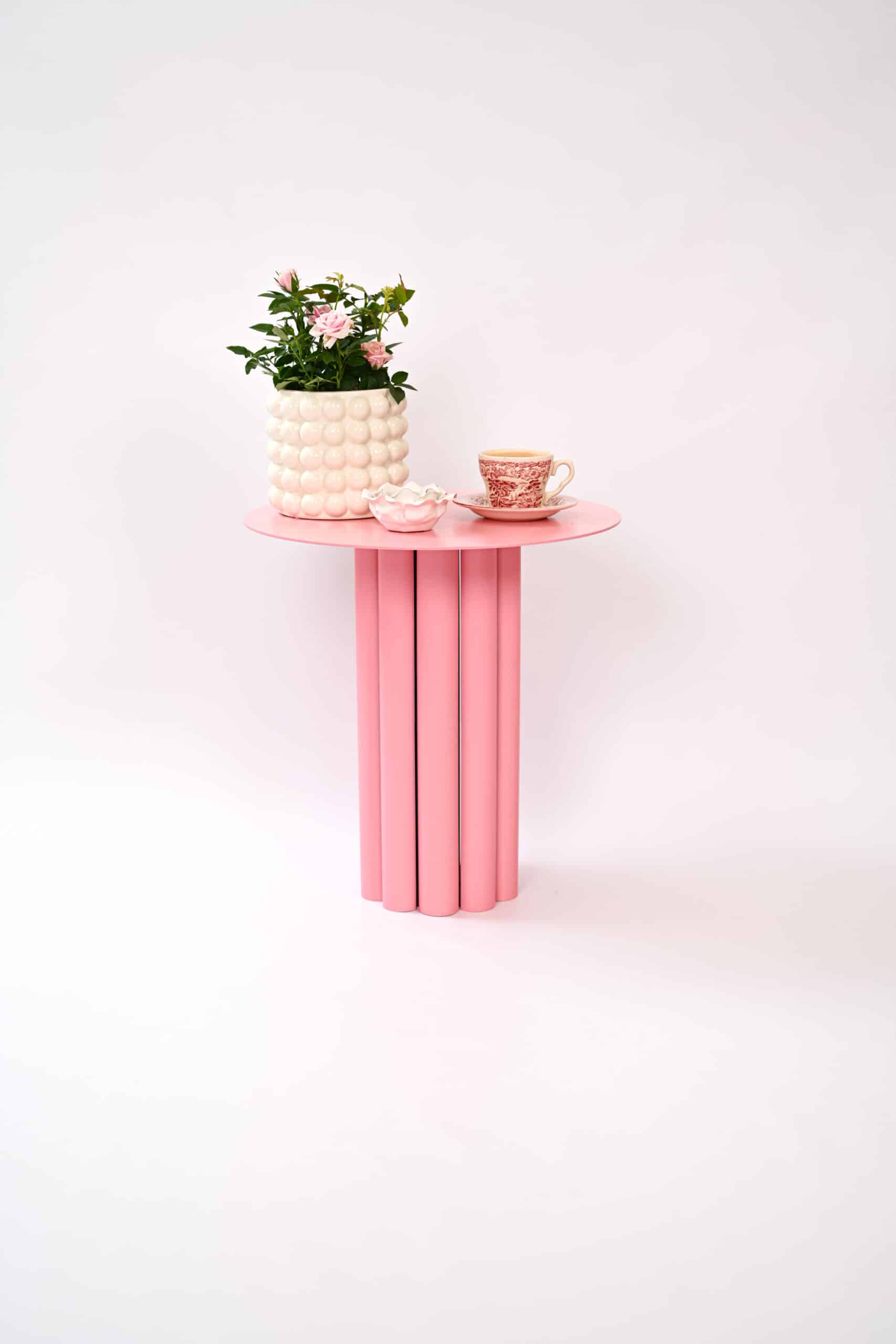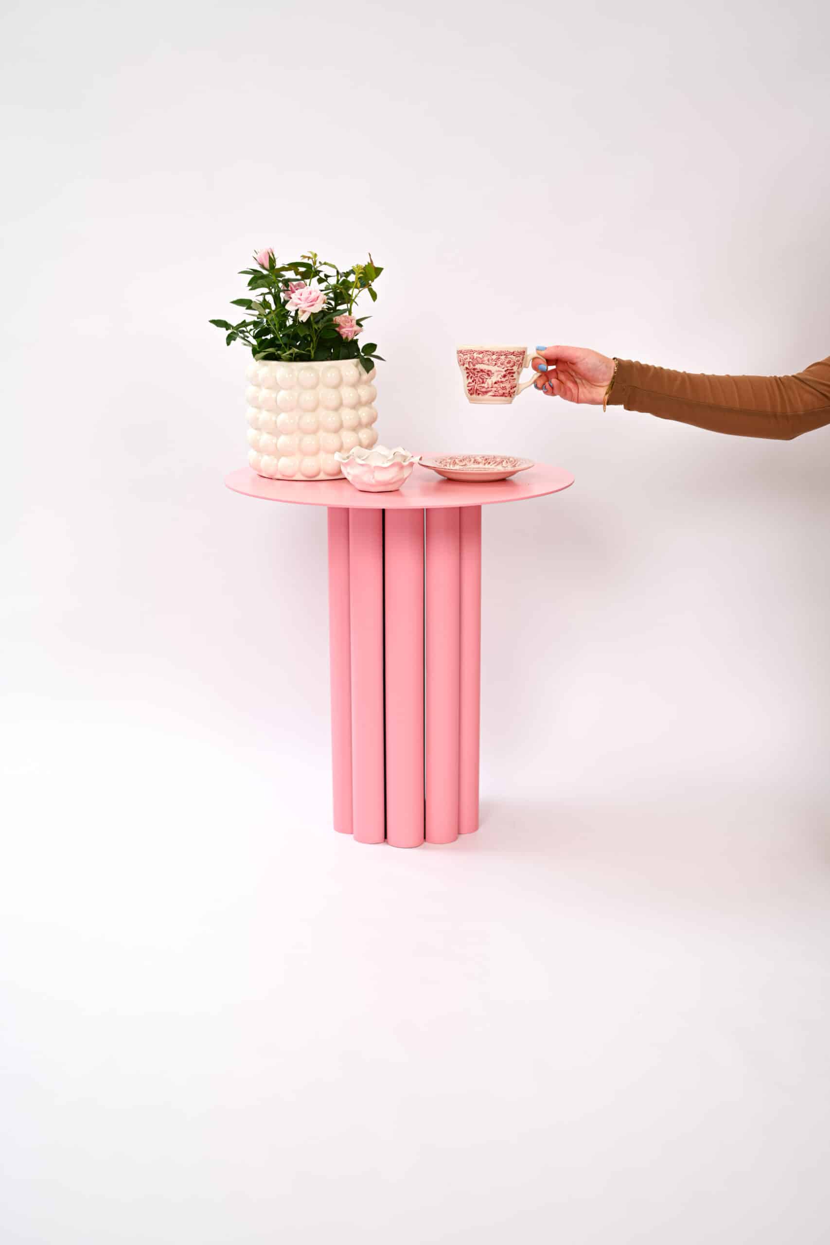 Soft Charm – The Aurea Metal Coffee Table in Light Pink.