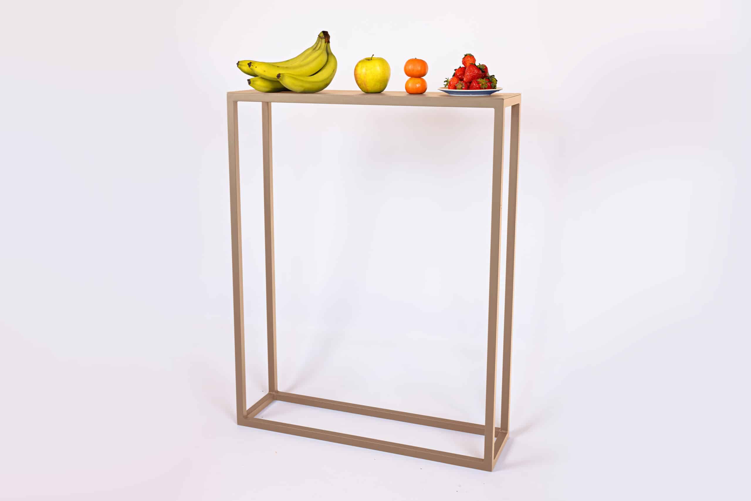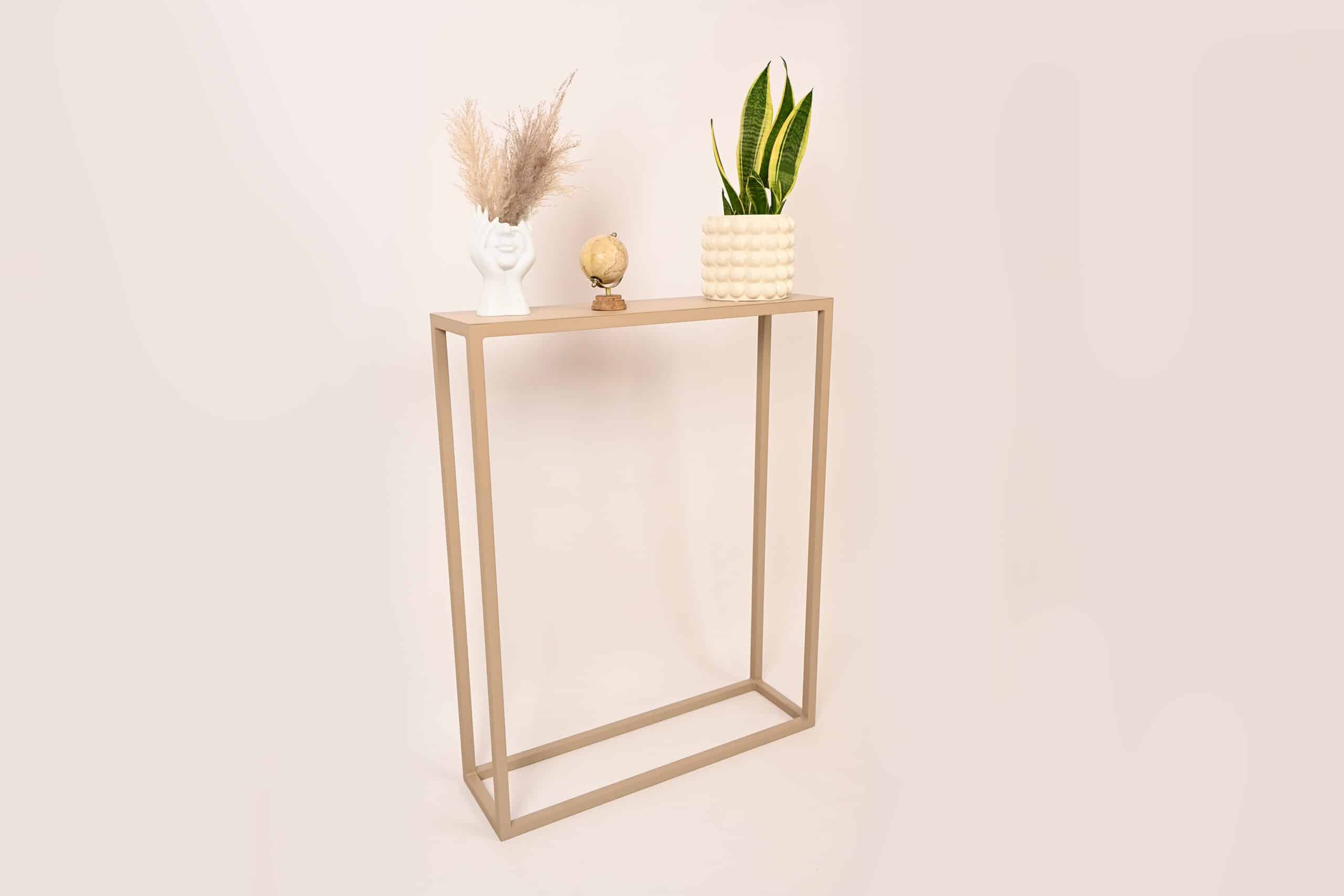 The Linea Steel console table in grey beige brings a sense of calm and versatility to any interior. Its simple yet elegant form fits perfectly in the entryway as a spot for keys, in the living room as a base for a lamp, or in the bedroom as an extra shelf.