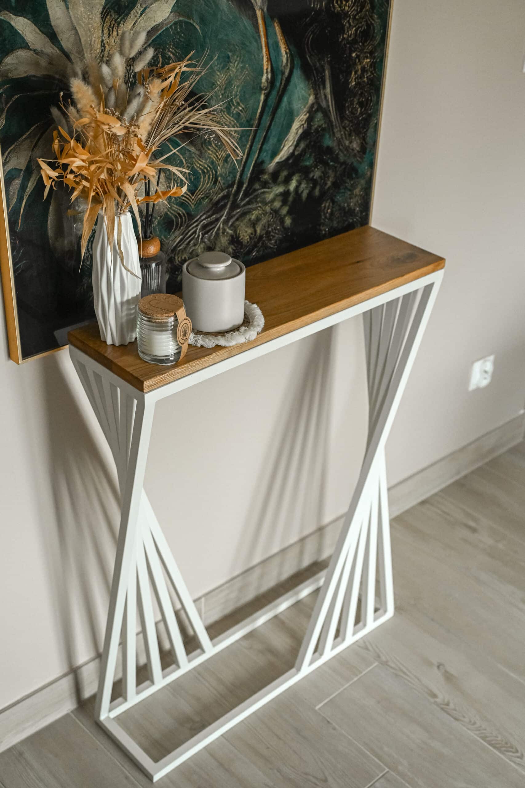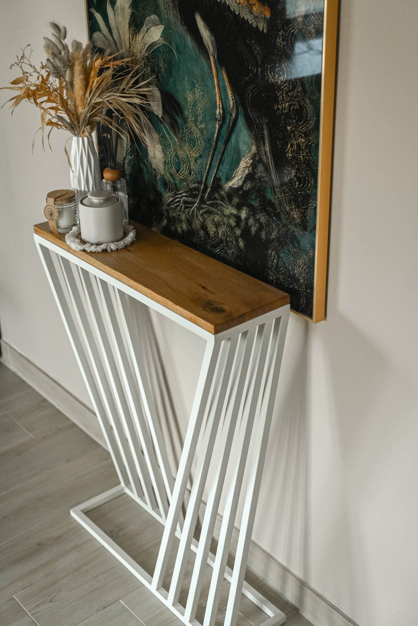 Discover subtle elegance and harmony with the Verta console table, where a soft Grey White base blends seamlessly with the natural charm of a solid oak top. This refined tone — a delicate mix of beige and grey — introduces a calming atmosphere and a touch of sophistication, perfectly suited for modern, minimalist, and Scandinavian-inspired interiors. It’s a versatile color that pairs easily with other shades, creating warm and cohesive living spaces. The Verta console in Grey White is an excellent choice for those who appreciate understated design and timeless aesthetics.