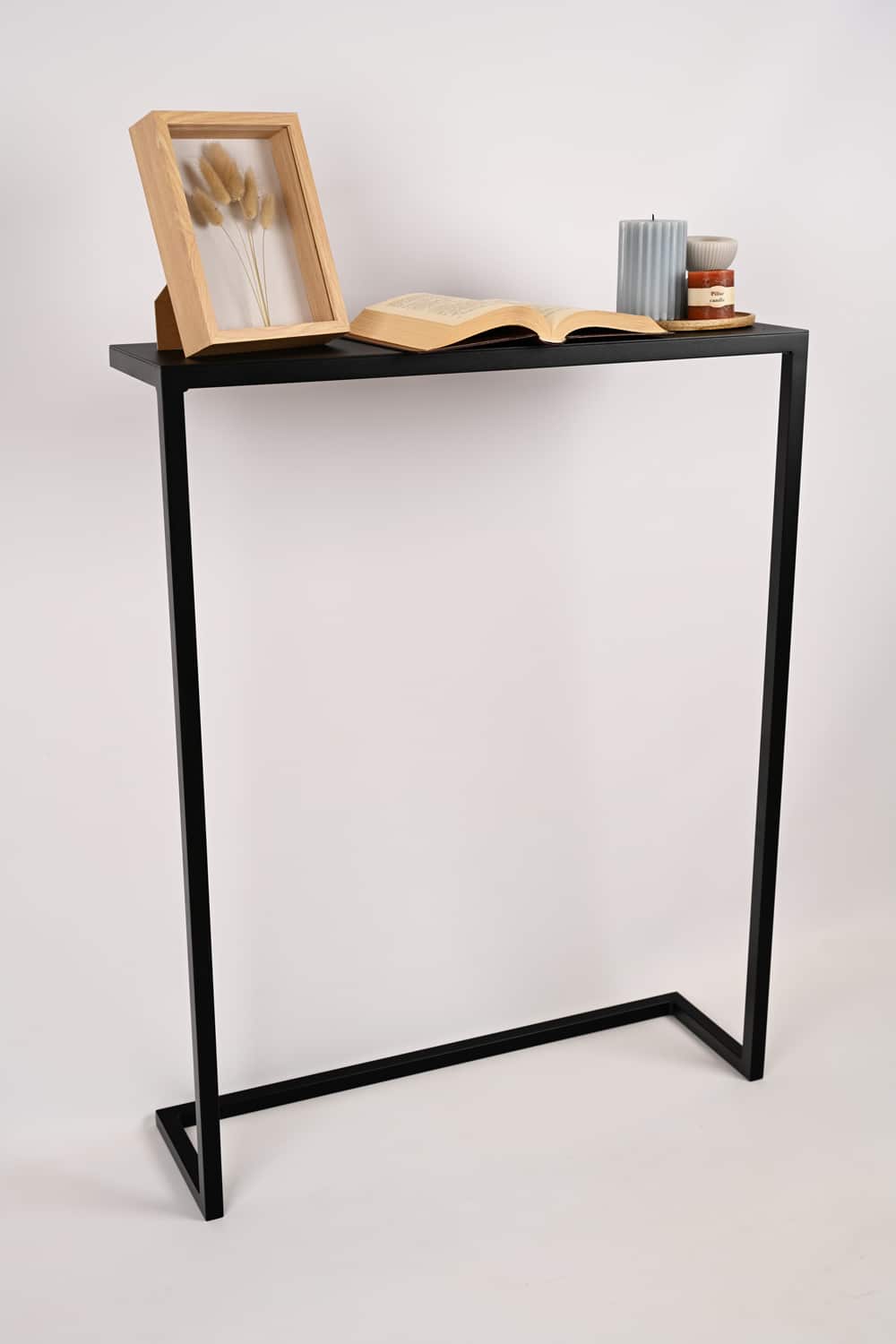 The Verto Steel console table in deep black is a bold and elegant choice for interiors that embrace sophistication and strong visual accents. Its fully metal construction delivers a striking, sculptural silhouette that instantly draws attention.