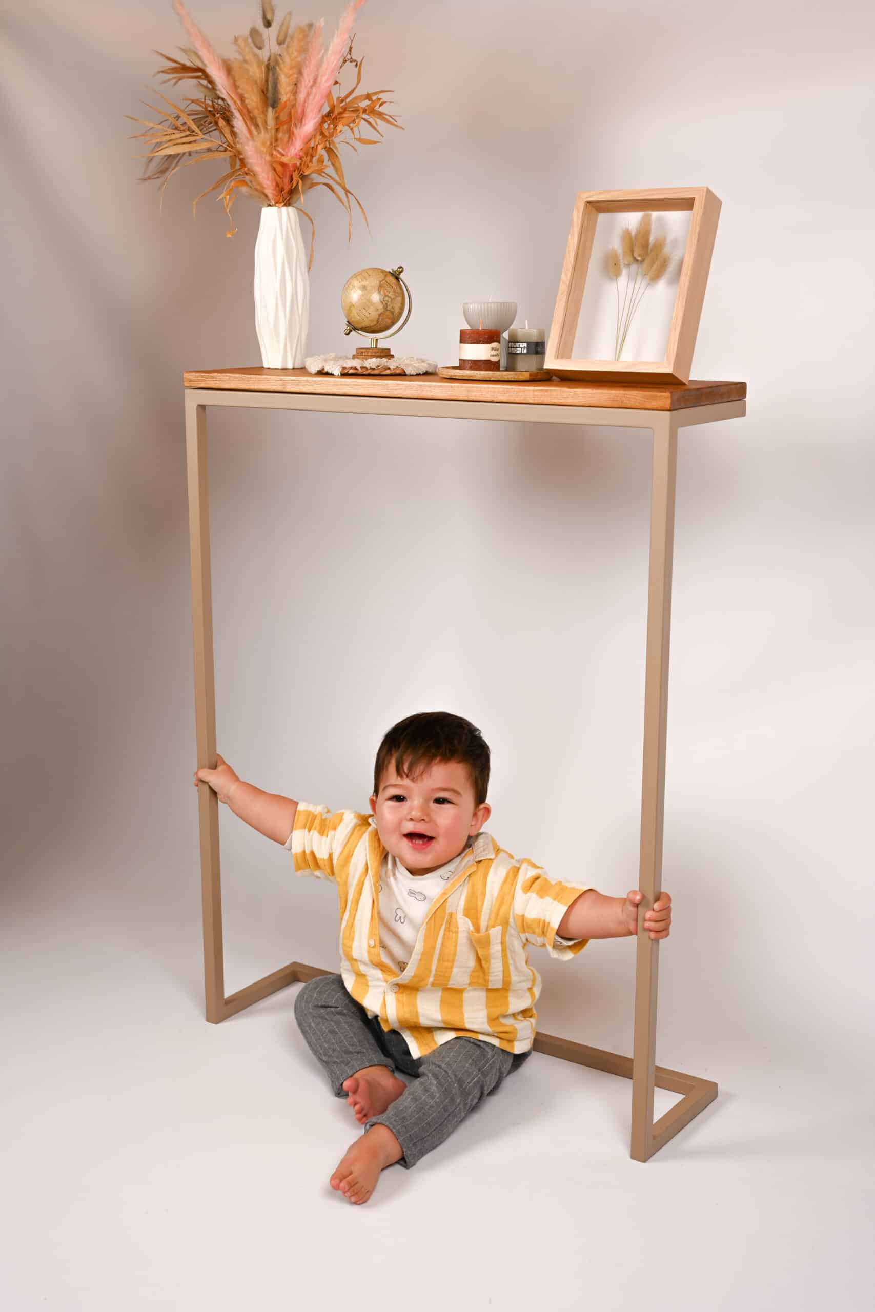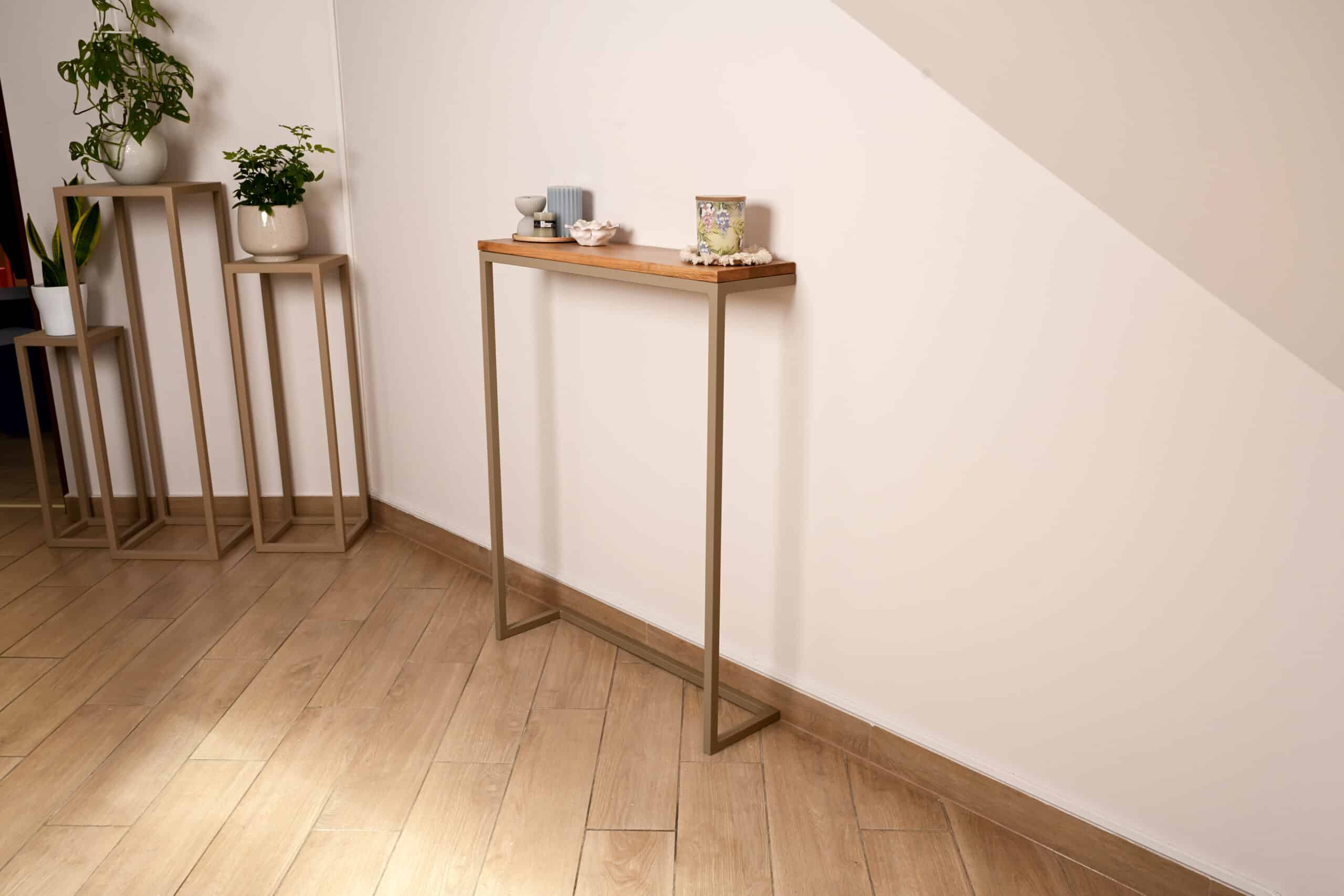 Perfectly suited for the entryway, living room, or bedroom, this metal and wood console table offers sturdy support and a practical surface for everyday essentials, decorative accents, or personal treasures. The gentle grey beige hue introduces warmth and balance to the room, making the space feel more open and welcoming.