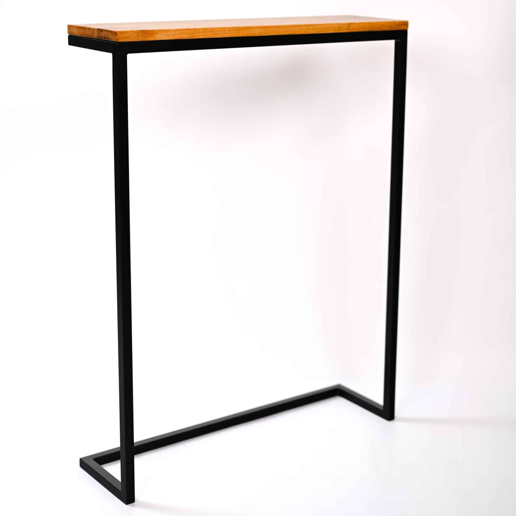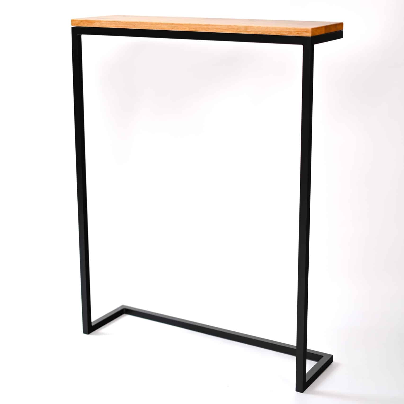 Stolik konsolowy Verto Wood w głębokiej czerni z blatem z naturalnego drewna dębowego to doskonały wybór dla osób ceniących wyrafinowany design i mocny kontrast wizualny. Połączenie ciemnego, malowanego proszkowo metalu i ciepłego dębu tworzy elegancki punkt centralny, który natychmiast przyciąga uwagę.
