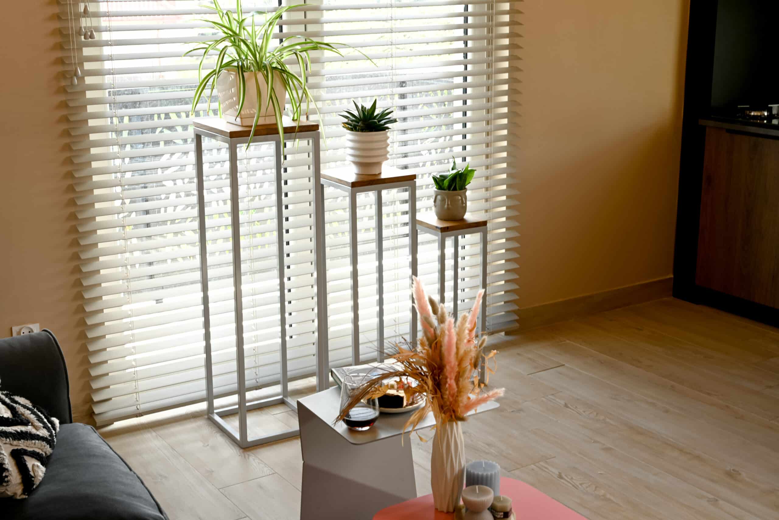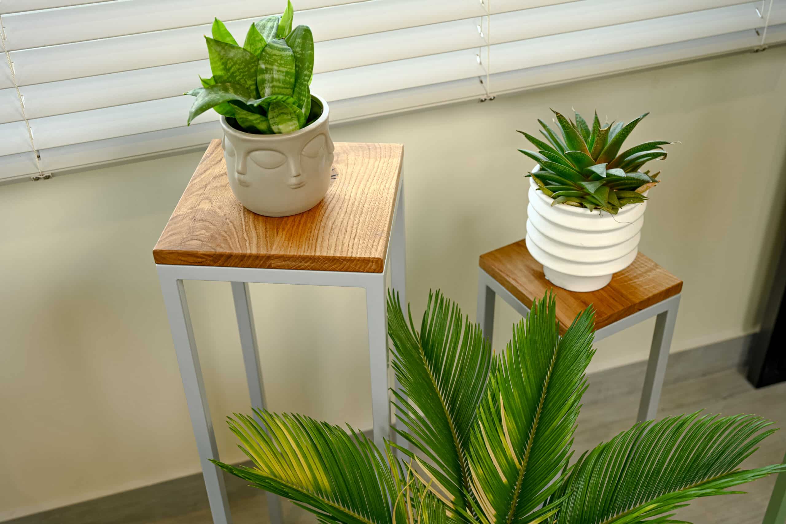 The durable metal construction ensures stability for your favorite indoor plants, while the wooden top provides a practical surface for pots or decorative objects. The bright white aluminum finish visually expands any room and pairs beautifully with greenery — adding an airy, modern elegance to the living room, dining area, or home office.