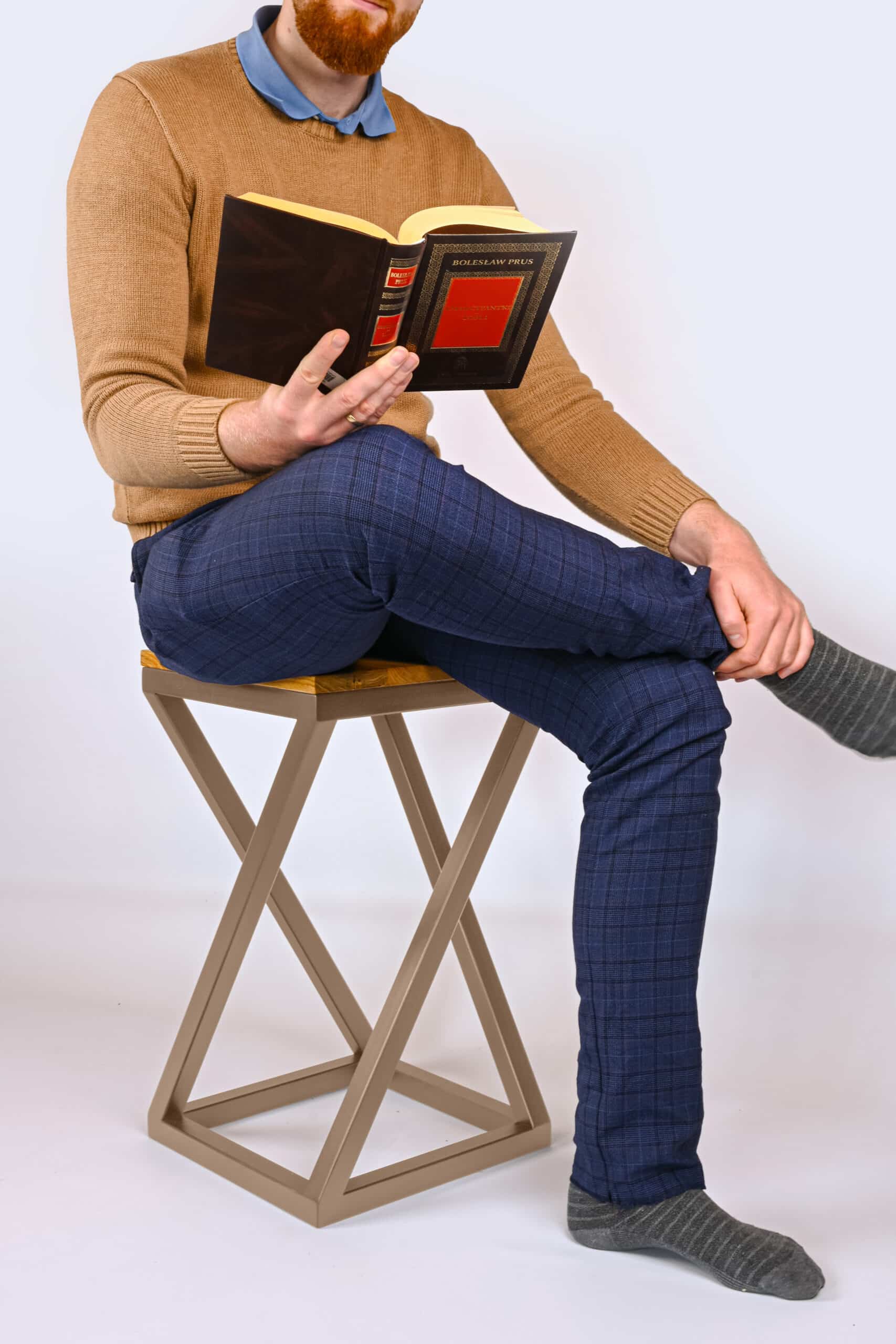 Modern Warmth – The Twist Metal Stool in Grey Beige with Oak Seat